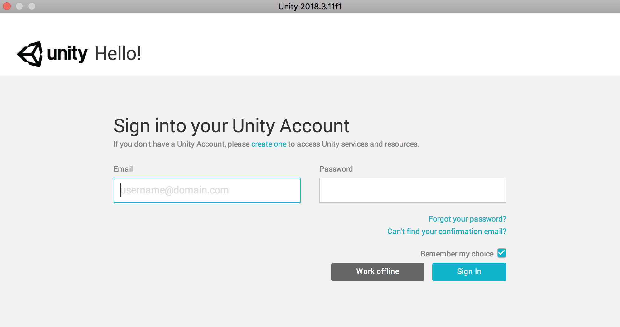 [Unity 첫 화면] 실행을 하면 위의 화면처럼 Unity가 Hello!라고 인사를 하며