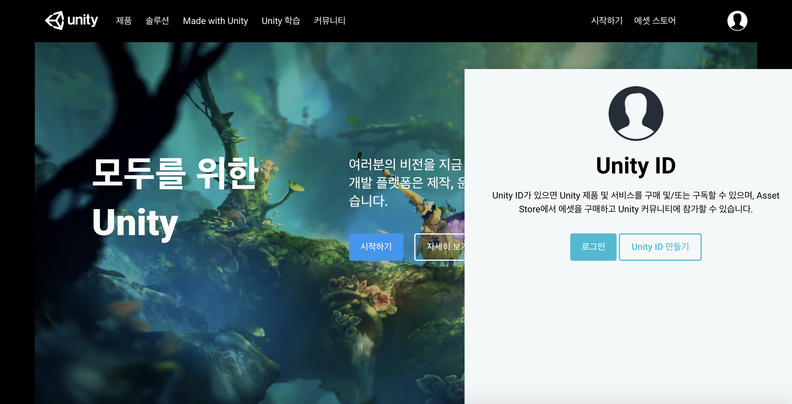 그 다음에는 Unity 메인 화면에서 쭉 스크롤을 밑으로 내리면