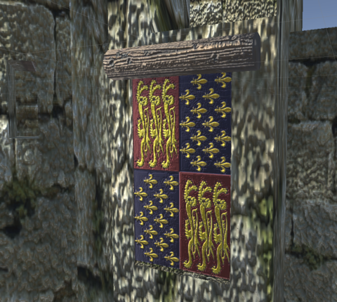 벽돌, 깃발 천, 철문 각각의 질감을 표현하기 위해 Metalic, Normal Map을 사용했습니다.
