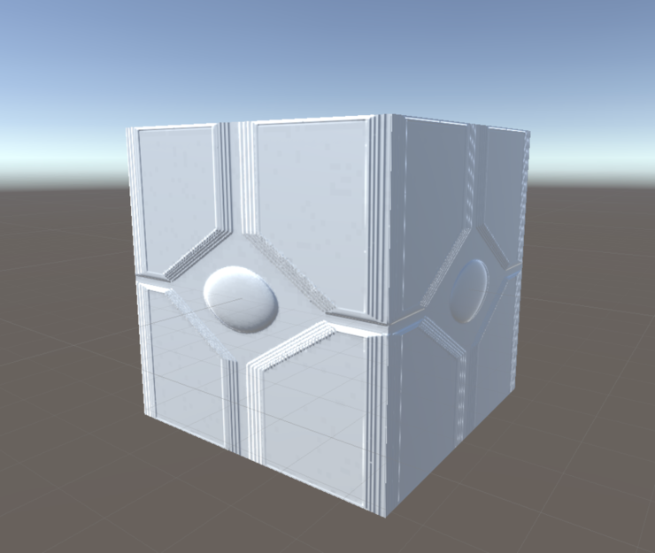 아래의 이미지들은 Normal Map Baking 후 Unity에서 큐브 오브젝트에 입혀본 모습입니다.