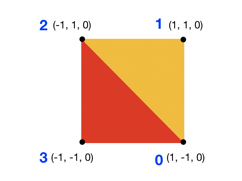 그래서 화면에 컬러를 입힐 때 삼각형 두개로 나누어서 각 vertex 값을 배열에 입력합니다.
