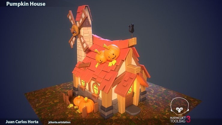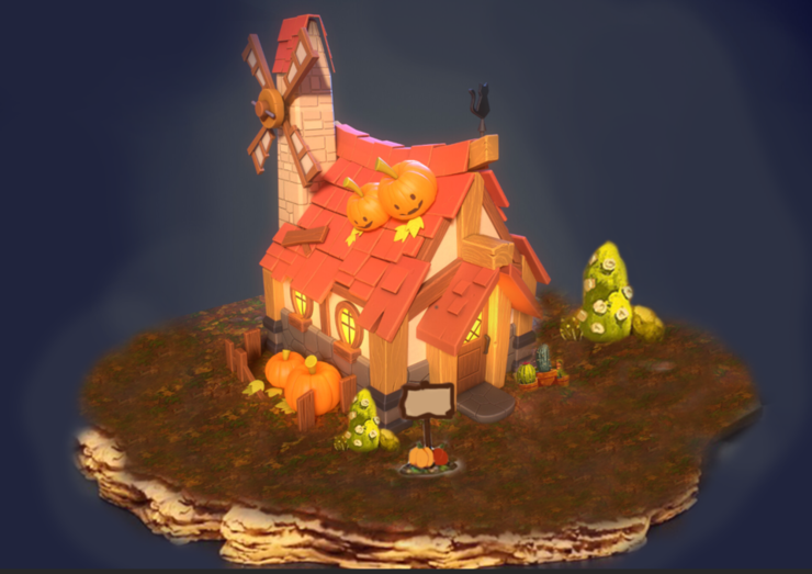 귀여운 호박집 레퍼런스를 찾아서 다른 배경 레퍼런스와 함께 혼합하여 만들어보기로 했습니다.