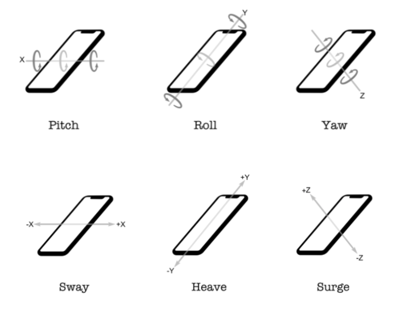 ARWorldTrackingConfiguration 6DOF(6 Degrees of Freedom)는 3DOF에 Sway, Heave, Surge가 추가 된 것입니다.